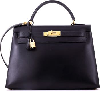 Kelly Handbag Black Box Calf with Gold Hardware 32