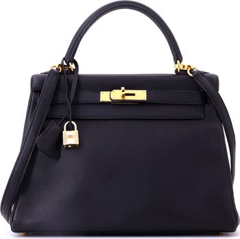 Kelly Handbag Black Clemence with Gold Hardware 28