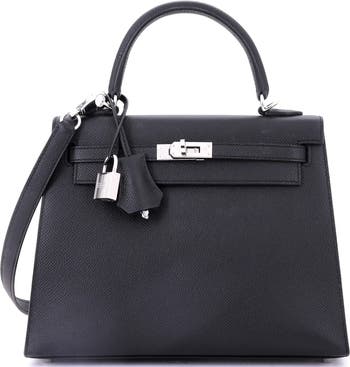 Kelly Handbag Black Epsom with Palladium Hardware 25