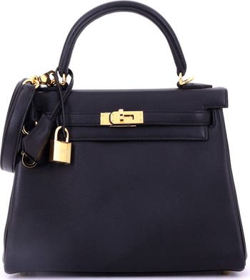 Kelly Handbag Black Swift with Gold Hardware 25