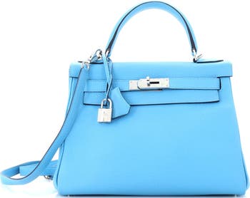 Kelly Handbag Blue Clemence with Palladium Hardware 28