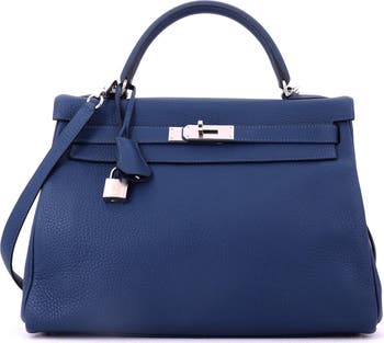 Kelly Handbag Blue Togo with Palladium Hardware 32
