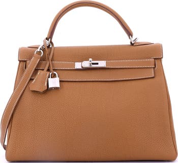 Kelly Handbag Brown Togo with Palladium Hardware 32