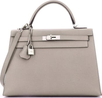 Kelly Handbag Grey Epsom with Palladium Hardware 32