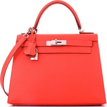 Kelly Handbag Orange Epsom with Palladium Hardware 28