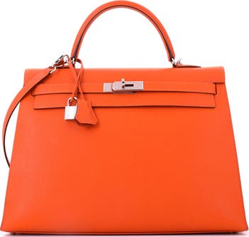 Kelly Handbag Orange Epsom with Palladium Hardware 35