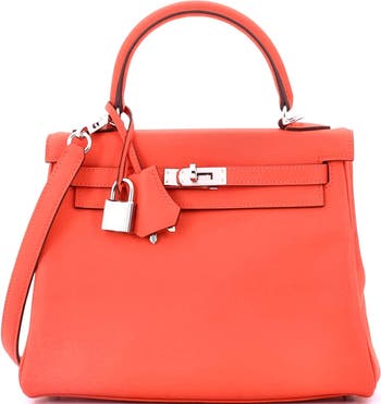 Kelly Handbag Orange Swift with Palladium Hardware 25