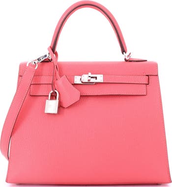 Kelly Handbag Pink Chevre Mysore with Palladium Hardware 25