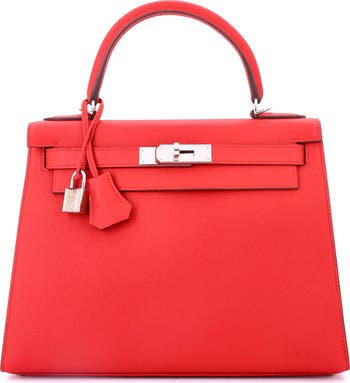 Pre-Owned Hermes Kelly Handbag Red Epsom with Palladium Hardware 28, Main, color, Rouge Tomate
