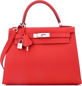 Pre-Owned Hermes Kelly Handbag Red Epsom with Palladium Hardware 28, Main, color, Rouge Tomate