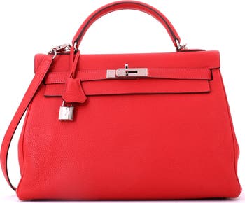 Kelly Handbag Red Togo with Palladium Hardware 32