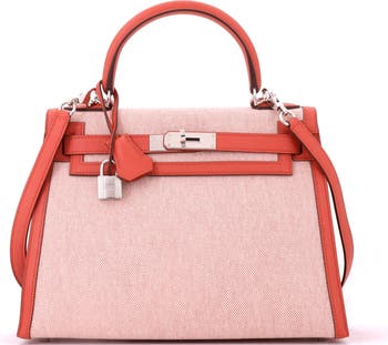 Kelly Handbag Toile and Brown Swift with Palladium Hardware 28
