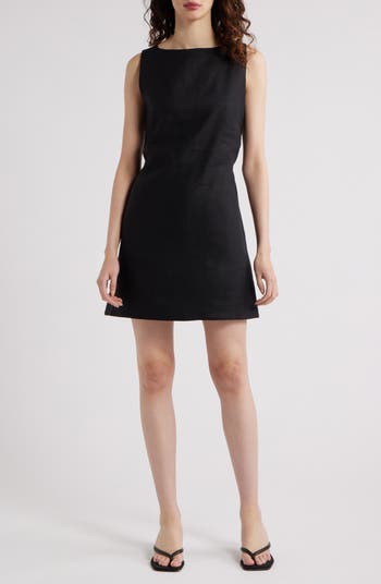 This little black dress offers a summery take on classic date-night style with airy linen construction and a back tie for added structure.