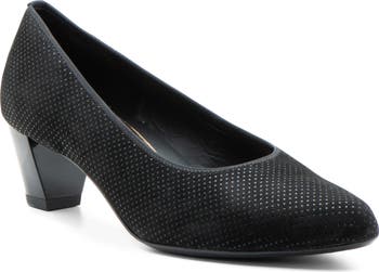 An elasticized topline conforms to your foot on a versatile pump grounded by a cushioned footbed and tapered block heel.