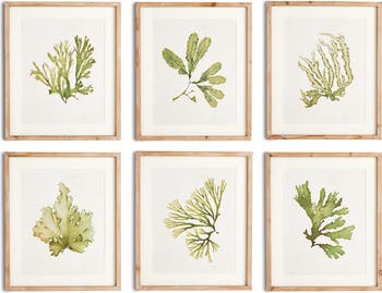 As elegant in style as they are in scale, these kelp prints are signature upscale coastal chic. The soft, watercolor design and washed natural wood frames make them ideal for the coastal home. A fresh pop of color is always on trend.