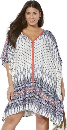 The Dolman sleeve Kelsea Cover Up Tunic is the epitome of cool-girl style. This easy, breezy tunic is a beach bag must-have with a relaxed fit, lightweight rayon woven fabric and double side slits for easy movement. It’s the perfect throw-on-and-go style for the beach to the boardwalk to poolside happy hour. Wear over all of your favorite swimsuits.