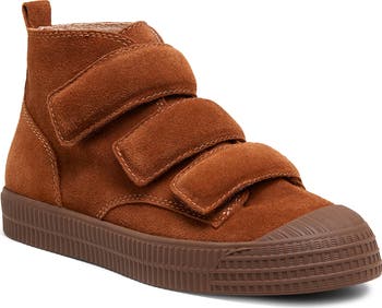 A chunky textured platform boosts this suede high-top sneaker with padded adjustable straps and a well-cushioned footbed that offers all-day comfort.