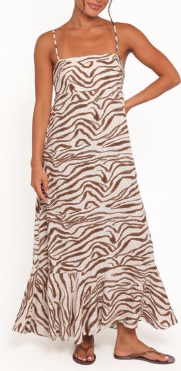 Zebra stripes enhance the adventure-ready vibe of this flowy, linen-kissed sundress featuring a smocked back panel and adjustable straps for a comfortable fit.