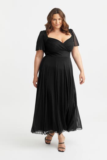 The Kemi Bolero Wrap Bodice Maxi Gown features a gorgeous, daring low-cut, wrap bodice featuring floaty angel sleeves, and a sweetheart neckline. The MagicBand® enhances your figure. This is a truly an all time classic maxi dress with wrap sweetheart neck line. Crafted in POWERFIT® mesh a fabric that breathes and is fully lined with a full flowing maxi skirt. Please note there are detachable shoulder pads as per your preference.