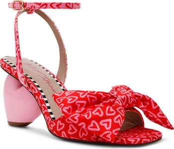 Complete your look with the romantic whimsy of this ankle-strap sandal featuring a bright bow embellishment and heart-shaped heel.
