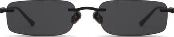 Rimless CR-39 lenses enhance the futuristic appeal of these rectangular sunglasses that are lightweight and feature adjustable nose pads for an ideal fit.