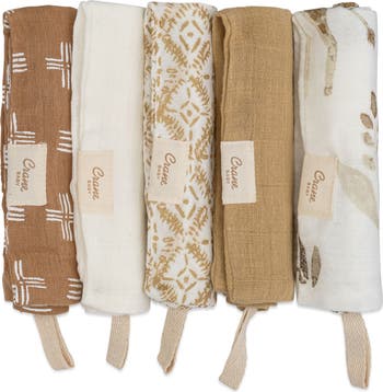 Beauty and comfort combine in this giftable set of stunningly patterned washcloths crafted from supersoft and absorbent cotton muslin designed to be gentle on baby's sensitive skin.