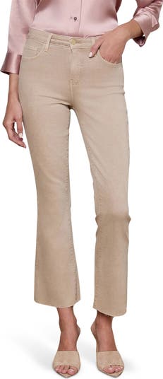 A contemporary take on '70s style, these high-rise jeans are cut from soft stretch denim in a cropped flare silhouette finished with raw hems.