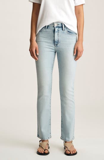A light fade and a comfy high waist define easy-to-love jeans cut from supersoft and low-stretch denim.