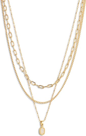 Three beautiful strands made from polished links combine in this layered necklace to showcase a luminous opal pendant that glows in the light.