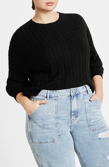 A curvy high-low hem relaxes the vibe of this sweater knit from exceptionally soft yarns with classic cable stitches and a fit you'll love to layer as the weather cools.