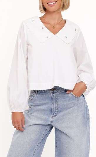 Kenna Embroidered Collared Cotton Poplin Top
