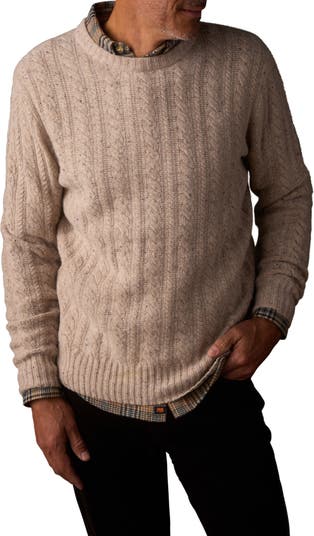 Nep-flecked yarns highlight the finer details of a timeless crewneck sweater made from a textured wool blend in a classic cable-knit construction.
