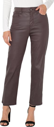 Rock a chic, leather-like look with these sleekly coated straight-leg pants featuring a high waist and ankle-grazing hems.