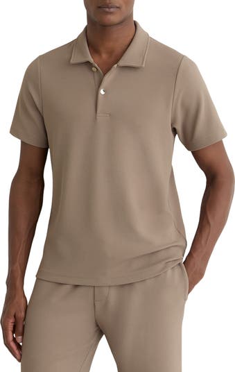 Subtly textured fabric adds touchable charm to this classic-cut polo topped with a spread collar detailed with glossy logo-embossed buttons.