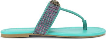Sparkling crystals and signature eagle hardware dazzle on this outfit-making T-strap sandal.