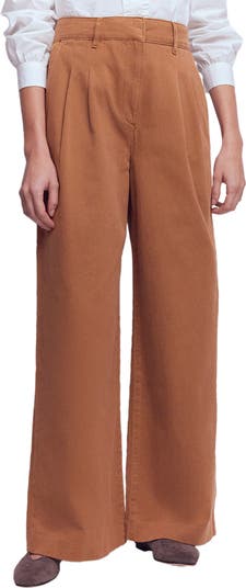 Neat pleats give way to widened legs in a pair of cotton staple pants painted in an earthy neutral.