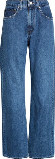 Nonstretch cotton denim brings authentic structure to these high-waist jeans in a timeless straight-leg silhouette. Designed with classic five-pocket styling, they offer a clean, versatile look with everyday appeal.