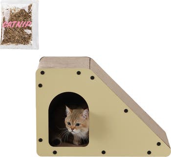Your cat will love our combination cat hideout and scratcher, and you'll love its modern, geometric design. The trapezoid shape provides surfaces for scratching and stretching, with a cozy cat cave inside. Keep your kitty happy and healthy with our modern, space-saving design.