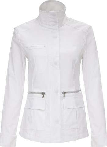 The Anatomie Kenya Safari Jacket offers a sleek, fashion-forward style and is nipped in at the waist for a flattering feminine fit. It is outfitted with plenty of pockets for stashing all your travel essentials and crafted in our signature stretch woven fabric, a lightweight stretchy material developed in France. The safari jacket is wrinkle-free, moisture-wicking, quick-drying, and highly durable.