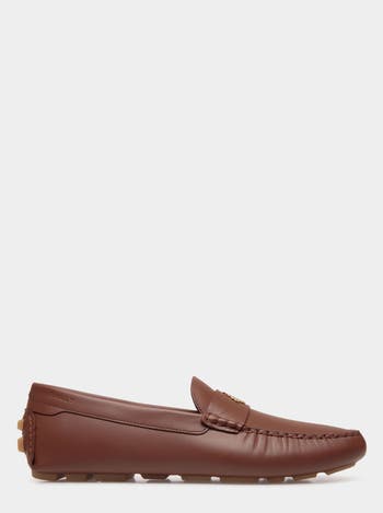 This Kerbs driver is trimmed by a metal Bally Crest at the center of the saddle strap. California construction and a rubber sole ensure lightness and flexibility for superior comfort, completed by classic moccasin stitching along the top of the vamp.