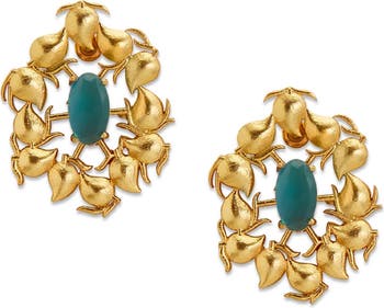 Drawing inspiration from luscious mangoes under clear blue skies, these earrings are striking, bold and edgy, with a softness and warmth to them that make them evergreen and versatile.