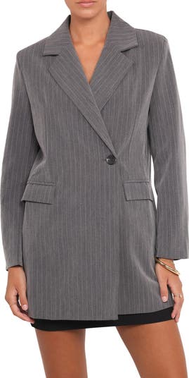 Pin-thin stripes bring classic polish to a tailored blazer updated in a longline silhouette.
