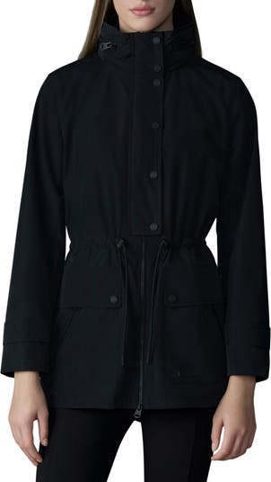 - Stand collar; stowaway drawcord-toggle hood