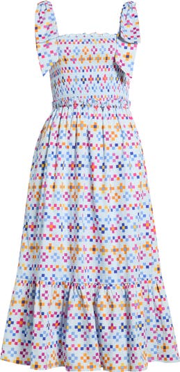 Why blend in when you were born to stand out in this ruffle midi dress featuring a smocked bodice adjustable tie shoulder straps and a flirty open back.
