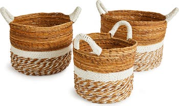 Fashion forward, with mixed weaves, natural materials and enhanced details. Even the rich mix of colors speak to the fashionista quality these baskets have.