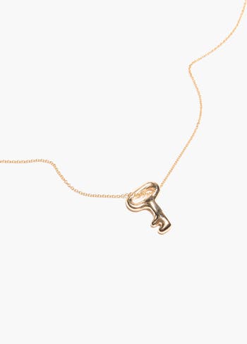 A sculpted key pendant dangles from a delicate chain, first formed in wax by hand then cast in recycled brass or Sterling Silver.
