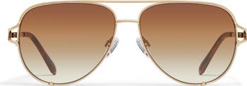 A wide-lens silhouette enhances the intriguing aura of quintessential aviator sunglasses that are go-to street-style staples.