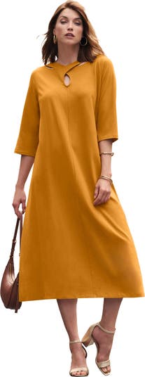 Simplicity with a twist. Jessica London’s plus-size women’s keyhole A-line T-shirt dress is a true wardrobe hero. Effortless to wear and endlessly versatile. A twisted keyhole neckline adds just the right touch of something special.