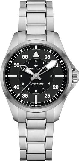 This aviation-inspired watch evokes the true spirit of exploration and adventure with a dial that pays homage to cockpit gauges, Swiss automatic movement, and a polished stainless steel design. This timepiece also offers a special Super-LumiNova coating for greater readability.