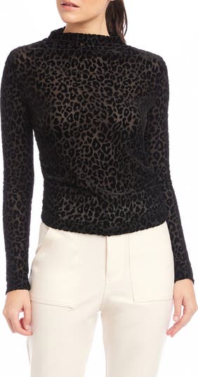 A bold burnout pattern lends a wild edge to this shirred top rendered in a fitted silhouette that hugs your curves.